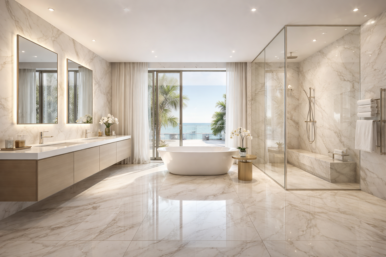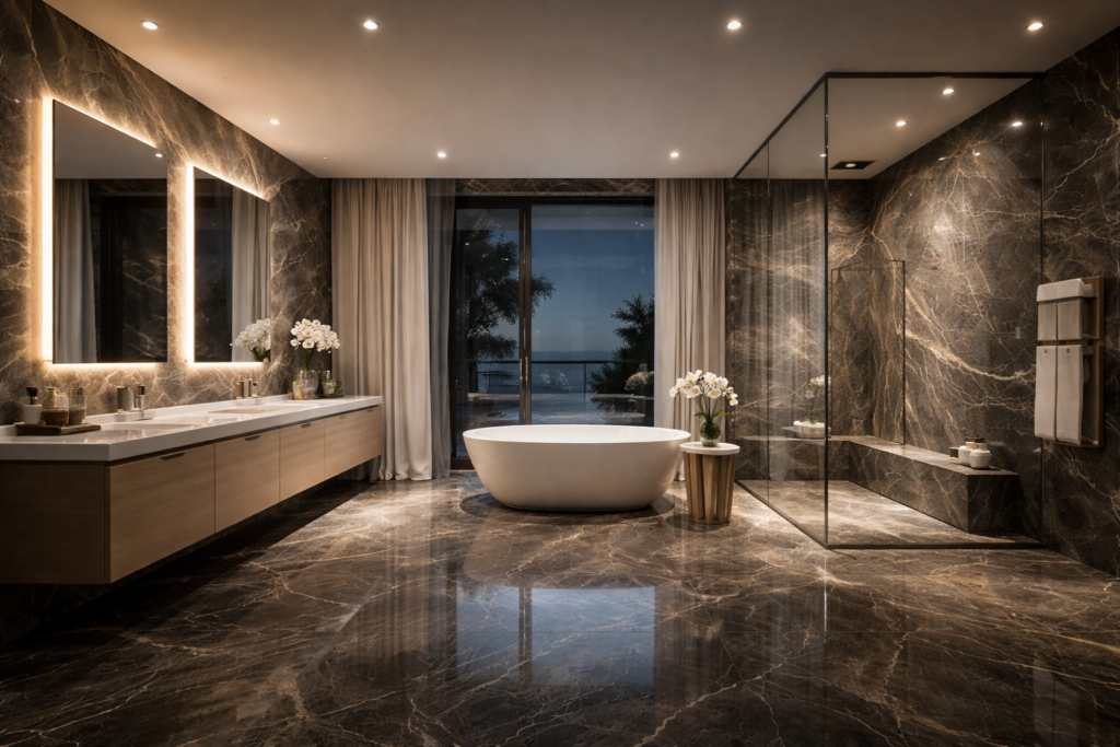 Complete marble and tile solutions for high-end bathrooms and spa-style interiors.